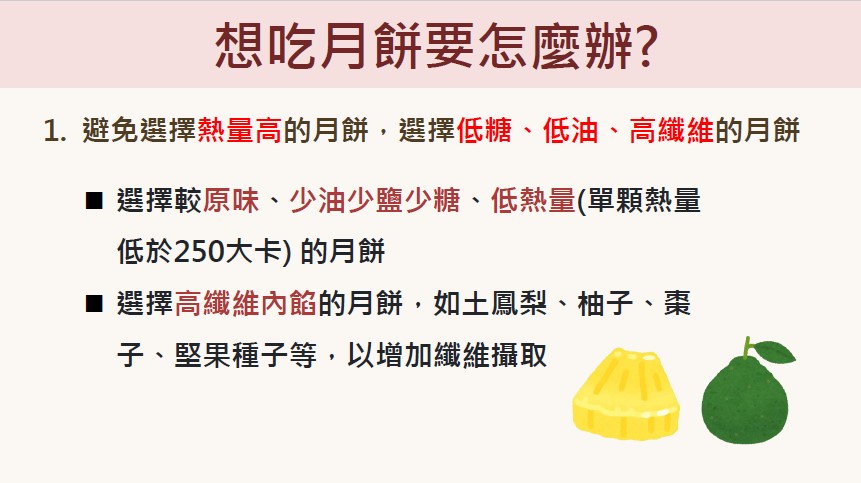 以下提供幾個中秋節飲食技巧,讓糖尿病的病患能在佳節裡吃得開心又健康!