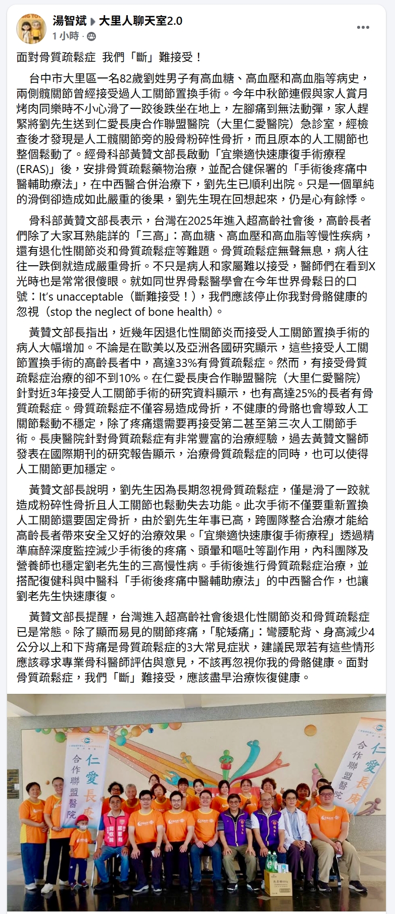 仁愛長庚合作聯盟醫院(大里仁愛醫院)骨科部黃贊文部長