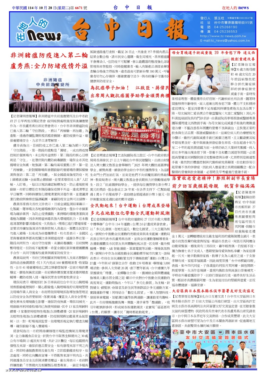 黃挺碩副院長呼籲,減重與代謝手術並非一勞永逸的治療,唯有透過長期追蹤、持續營養監測與醫師保持良好溝通,才能確保術後健康持續維持,一旦出現營養相關併發症,專業團隊的重建手術能為病人帶來再次翻轉生命的契機,這正是仁愛長庚合作聯盟醫院(大里仁愛醫院)消化外科團隊持續努力的核心使命。