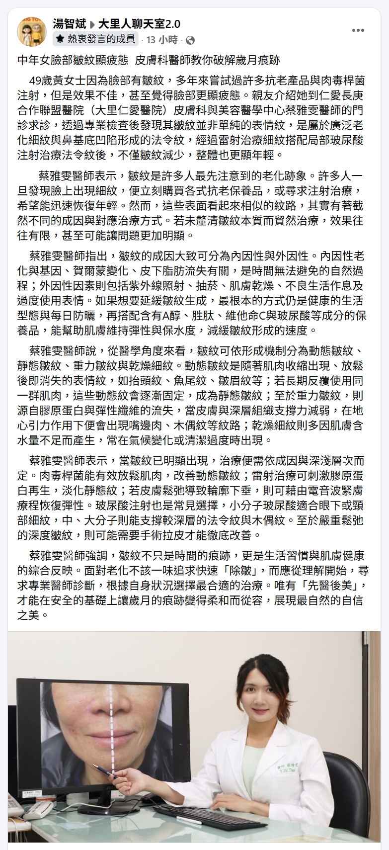 仁愛長庚合作聯盟醫院(大里仁愛醫院)皮膚科與美容醫學中心蔡雅雯醫師