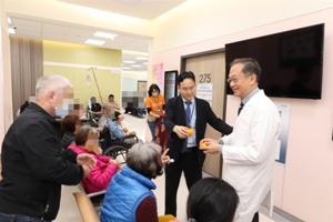 隨後名家們現場揮毫,將祝福融入春聯中,吸引眾多民眾駐足領取。龔嘉德院長同時親自準備了鮮豔飽滿的橘子,走訪門診候診區,逐一將象徵「大吉大利」的橘子親手送到病友與家屬手中,親切叮嚀保重身體,讓原本嚴肅的醫院充滿了過年的喜氣與人情味,不少民眾收到橘子後直呼:「拿到了院長致贈的大吉大利,今年一定很順利!」紛紛對醫院的用心與溫暖表達謝意。