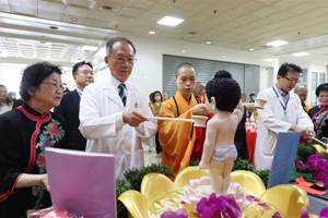 仁愛長庚合作聯盟醫院(大里仁愛醫院)與國際佛光會中華總會福平分會長期深耕在地,每年攜手舉辦的「佛誕祈福浴佛活動」,已成為院內醫護與病友心中最溫暖的心靈支柱。今年更迎來殊勝因緣,佛光山惠中寺副住持如瑄法師感念該院多年來致力營造溫馨醫療環境的用心,4月28日特別主動蒞臨主法,如佑法師及有海法師共同護持為全院同仁及病患灑淨祈福,為法會增添無比的莊嚴與法喜。